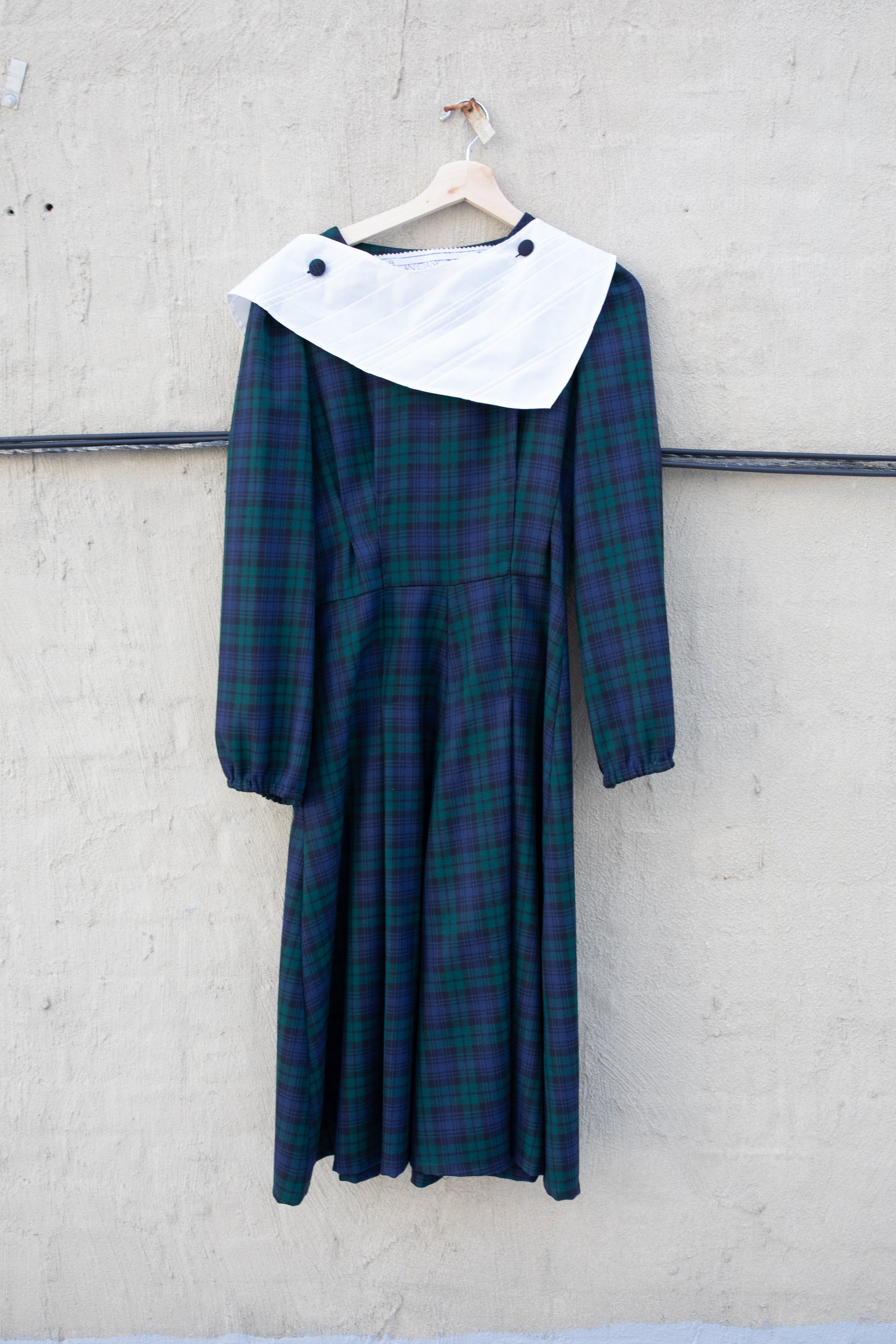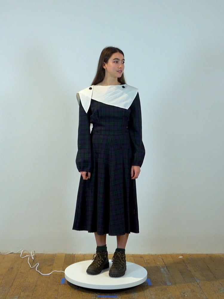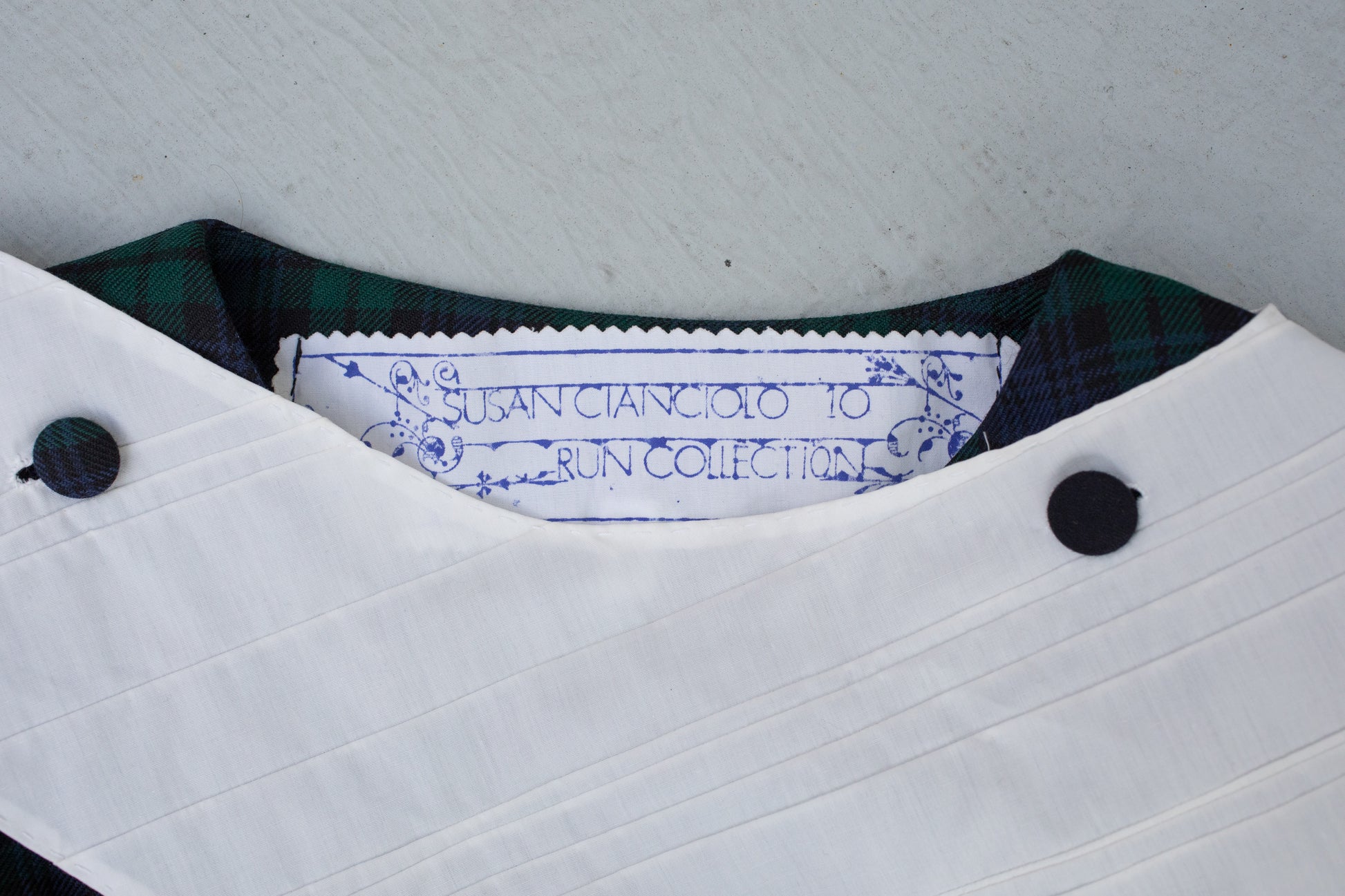 RUN 10 100% wool blend long sleeved dress with asymmetrical cotton collar/bib attachment.