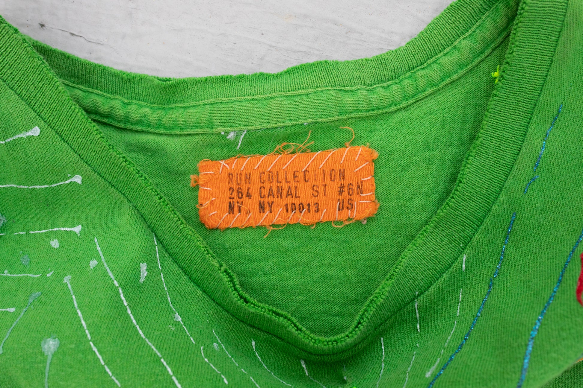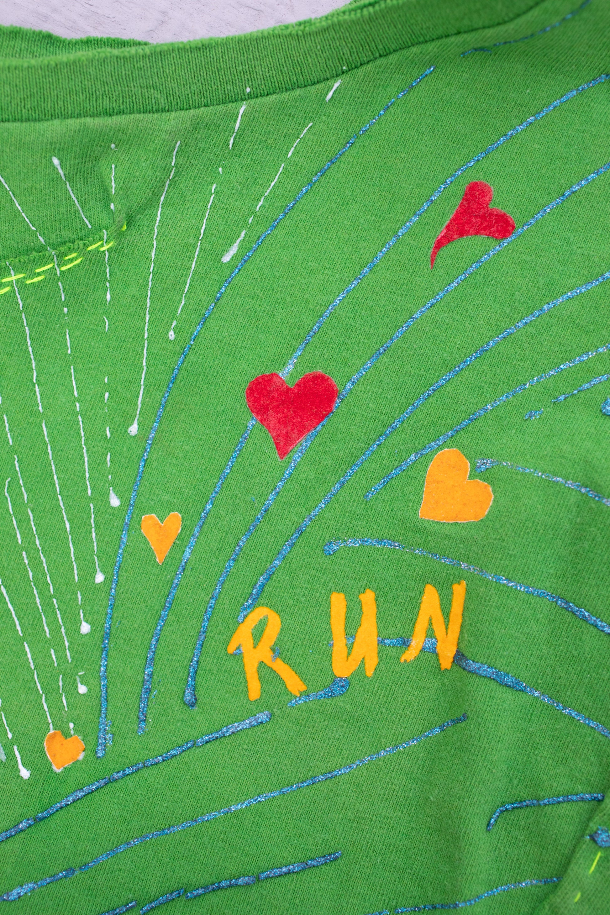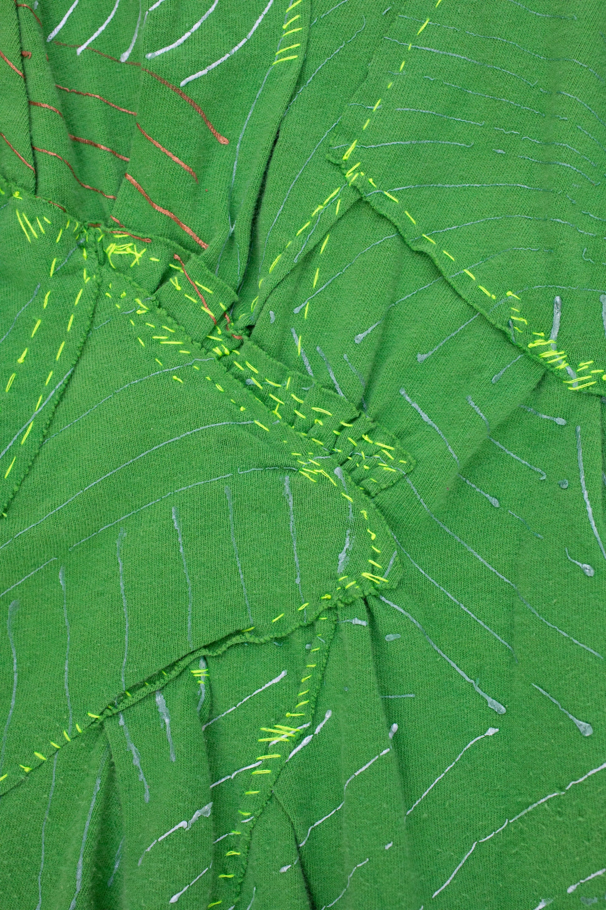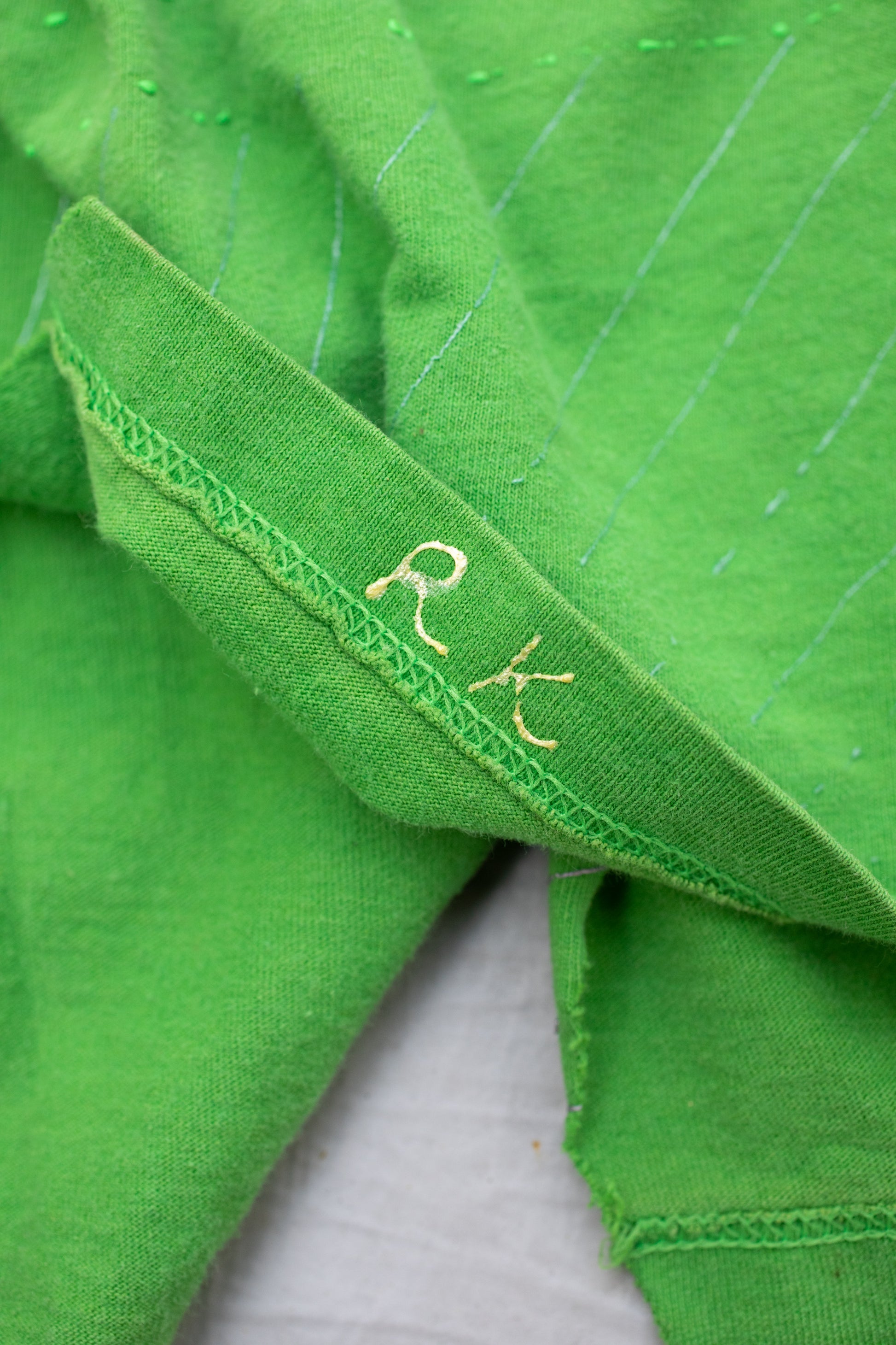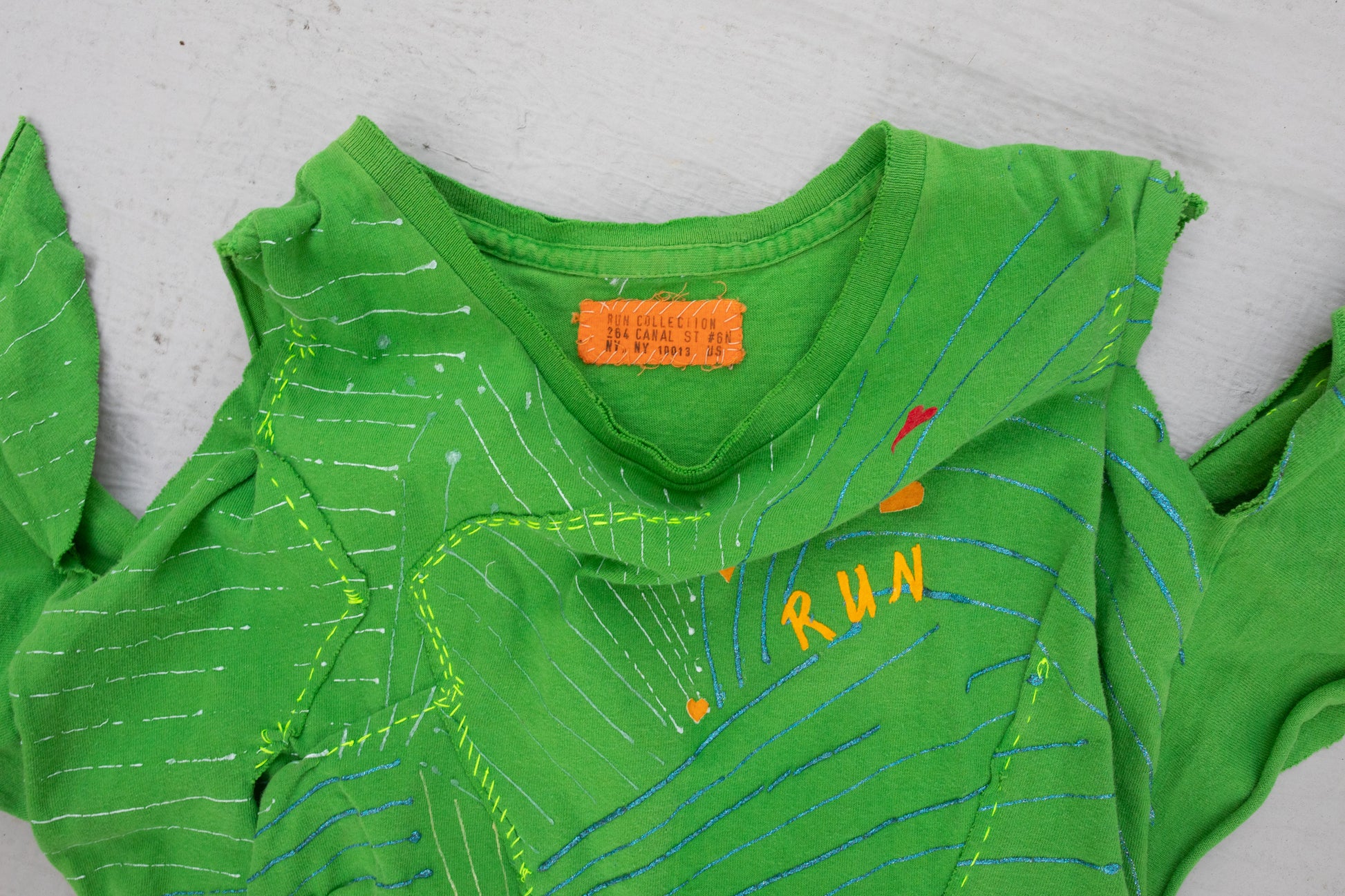 Custom piece during RUN 7: Pieced green cotton short-sleeved top.
