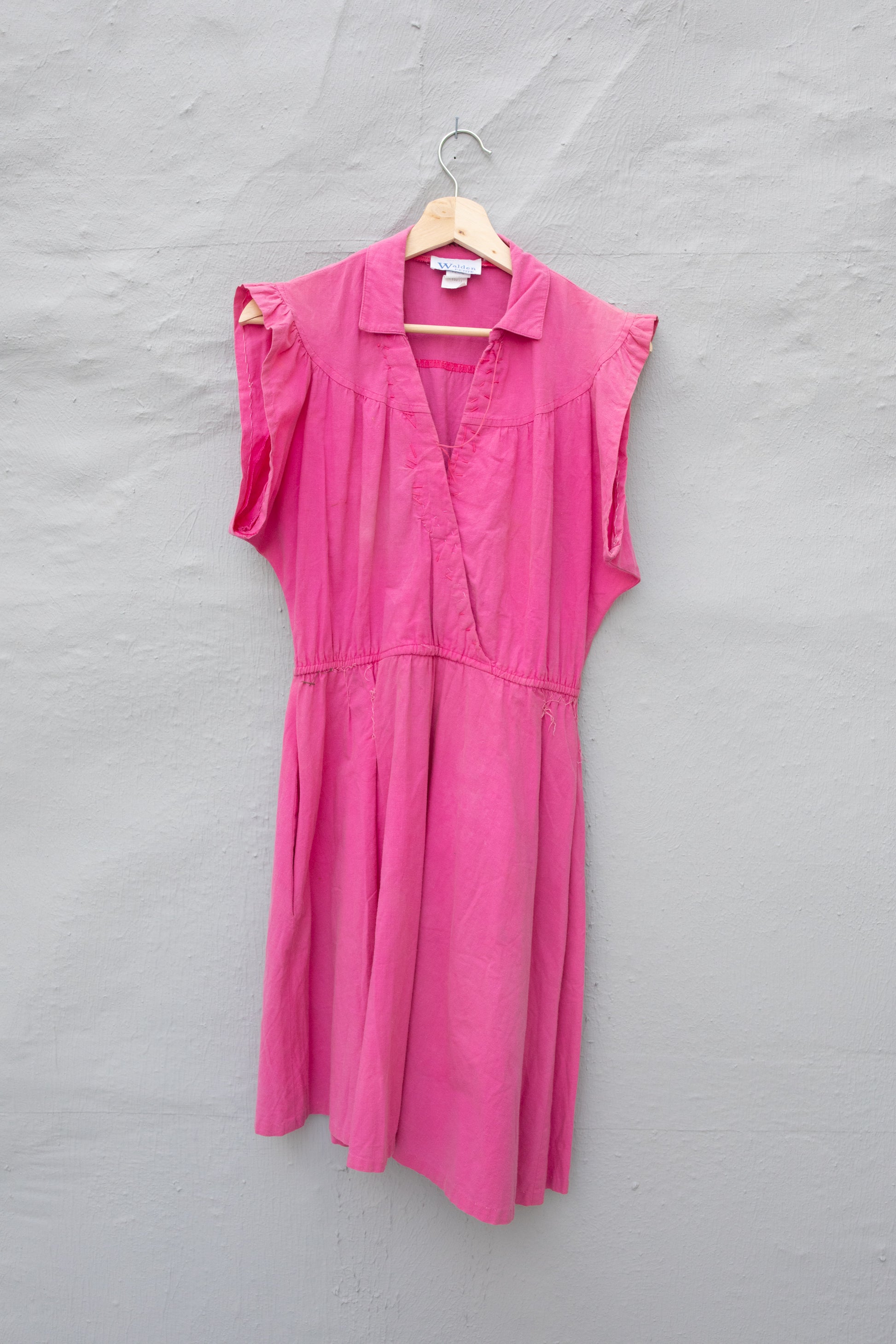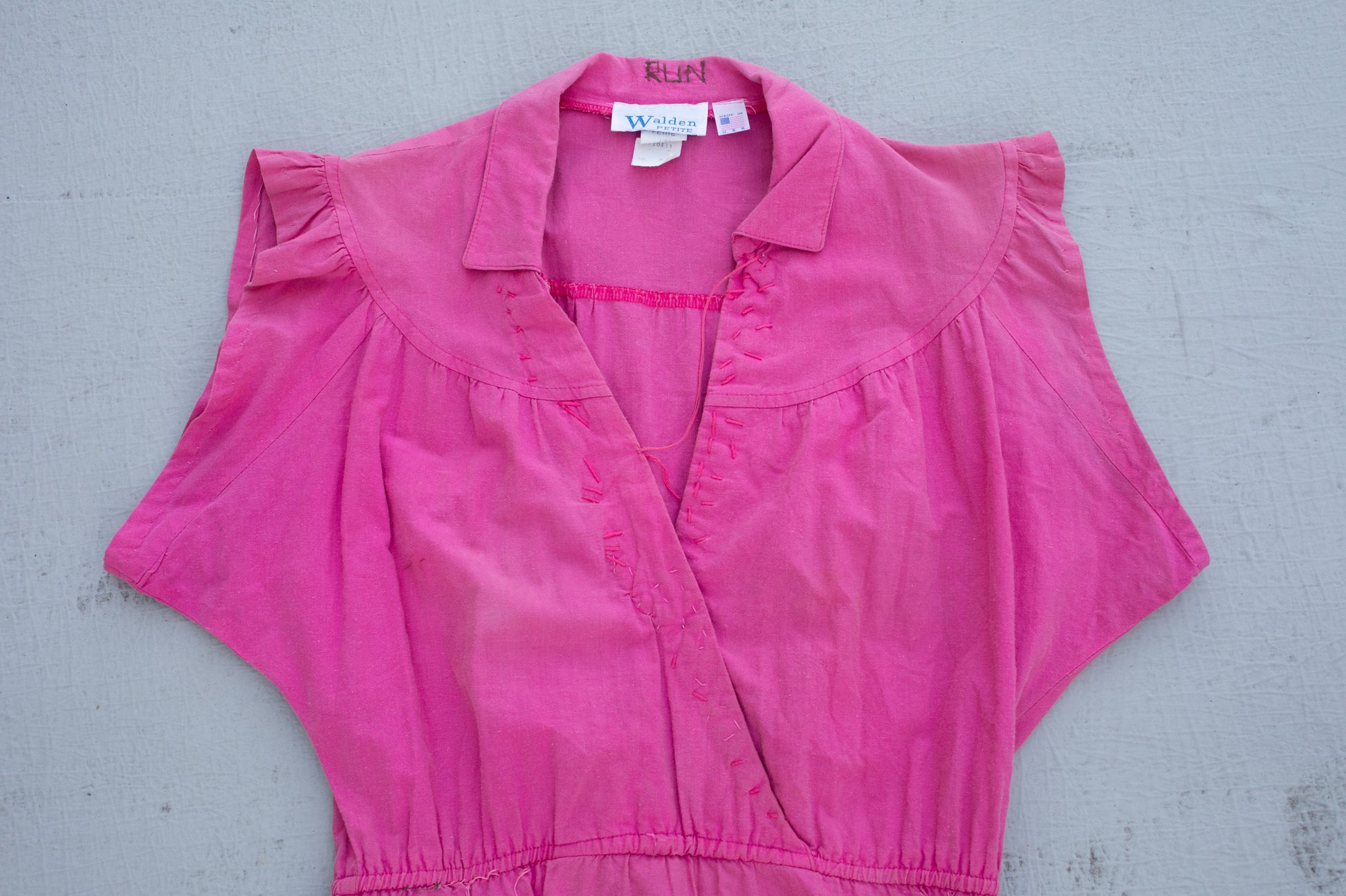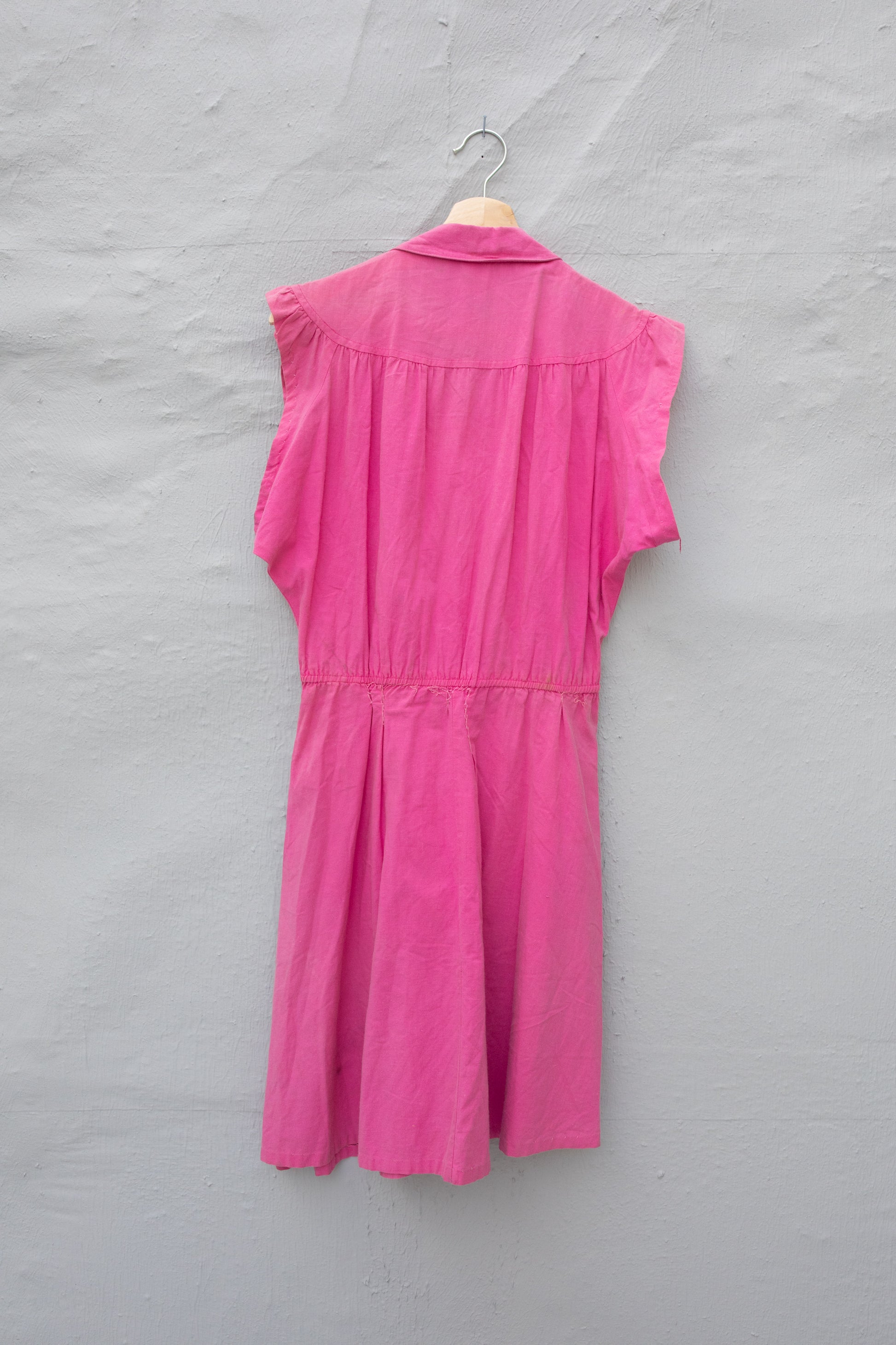 Custom piece during RUN 7: Pink cotton short-sleeved collared dress.