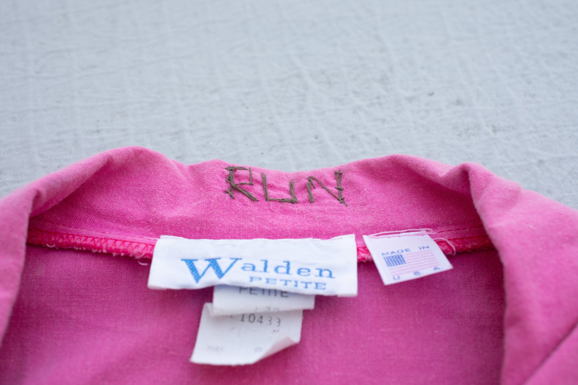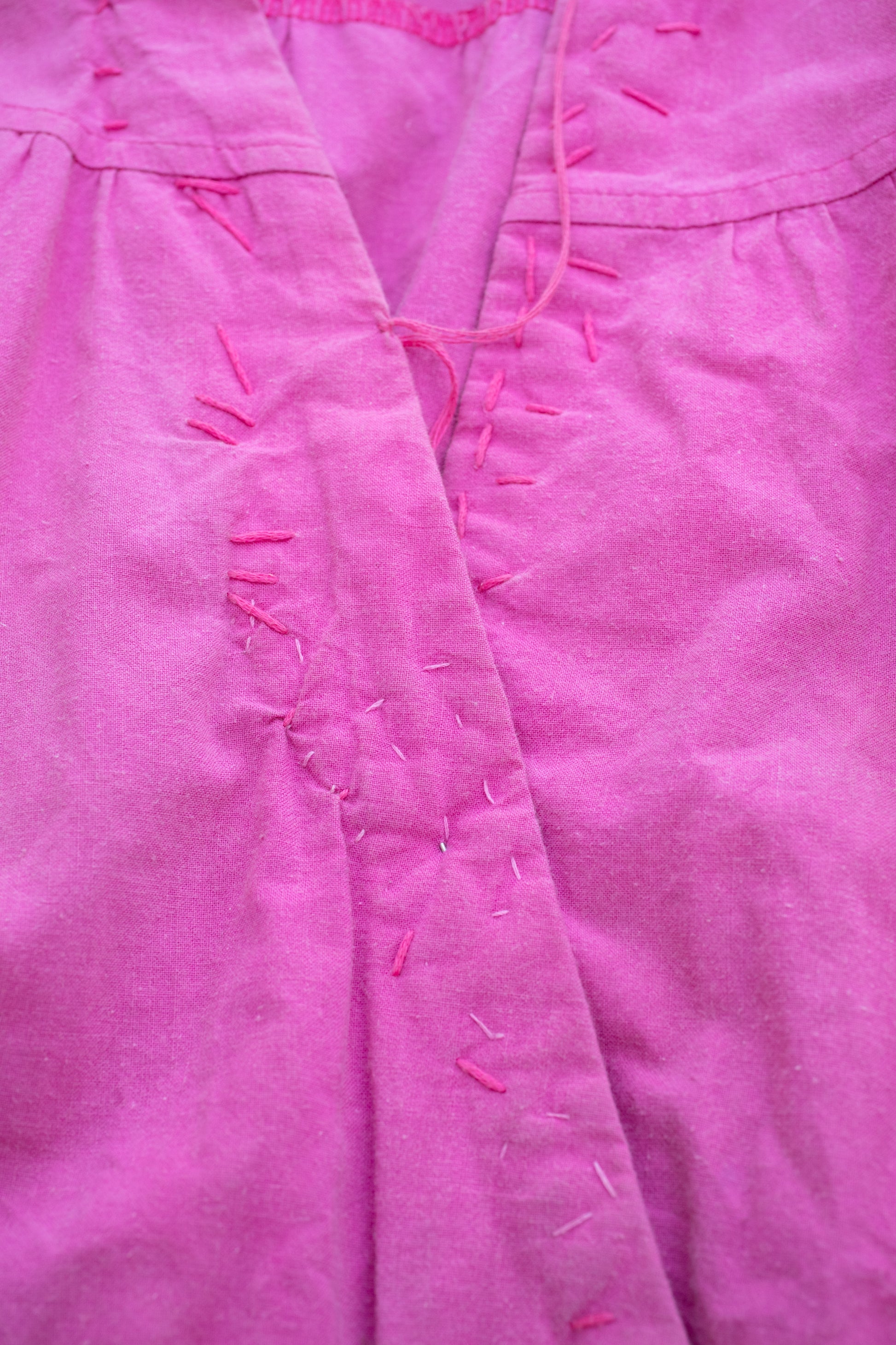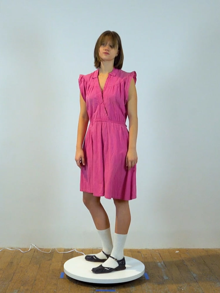 Custom piece during RUN 7: Pink cotton short-sleeved collared dress.