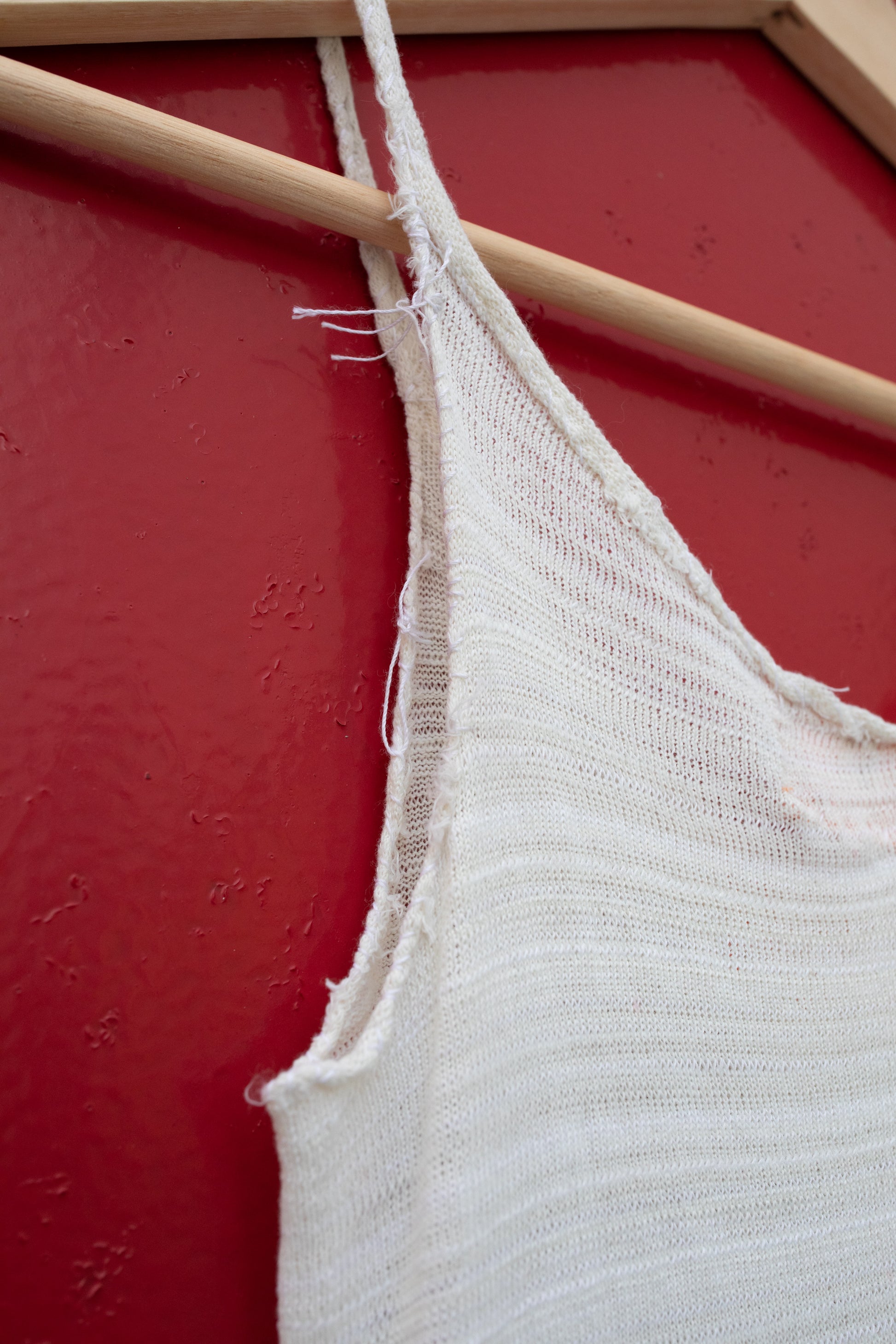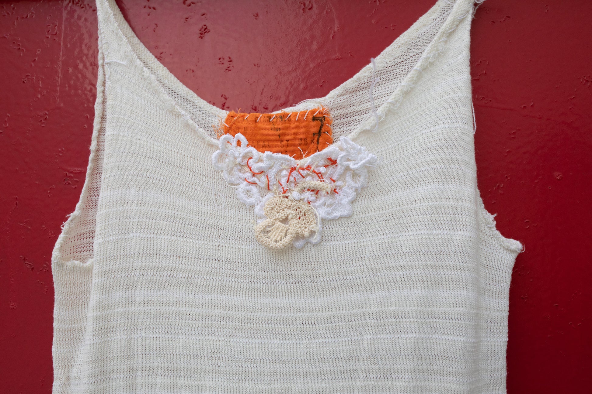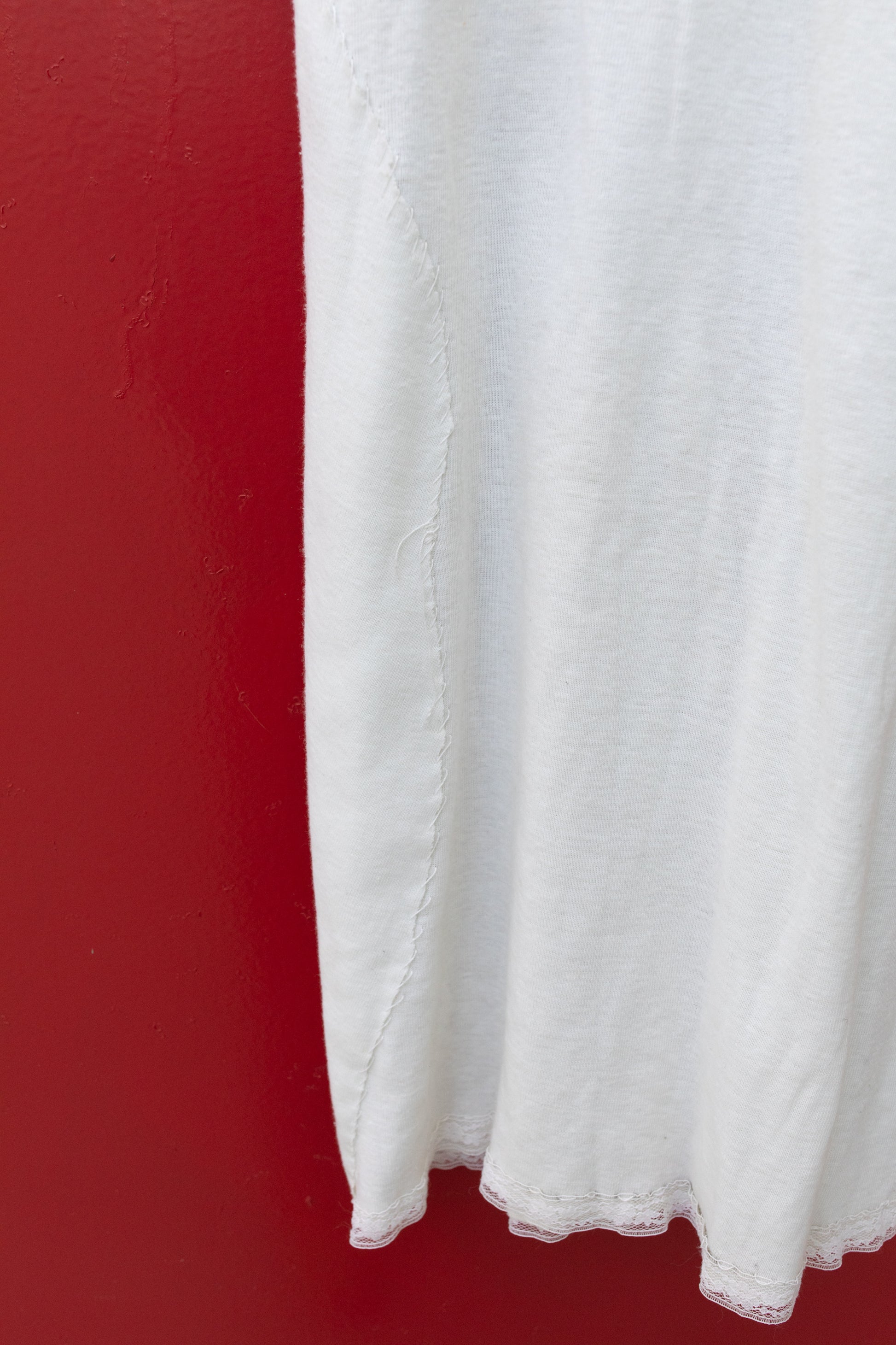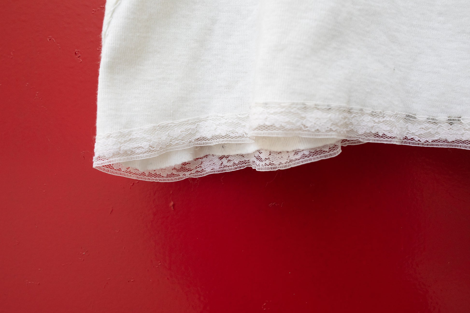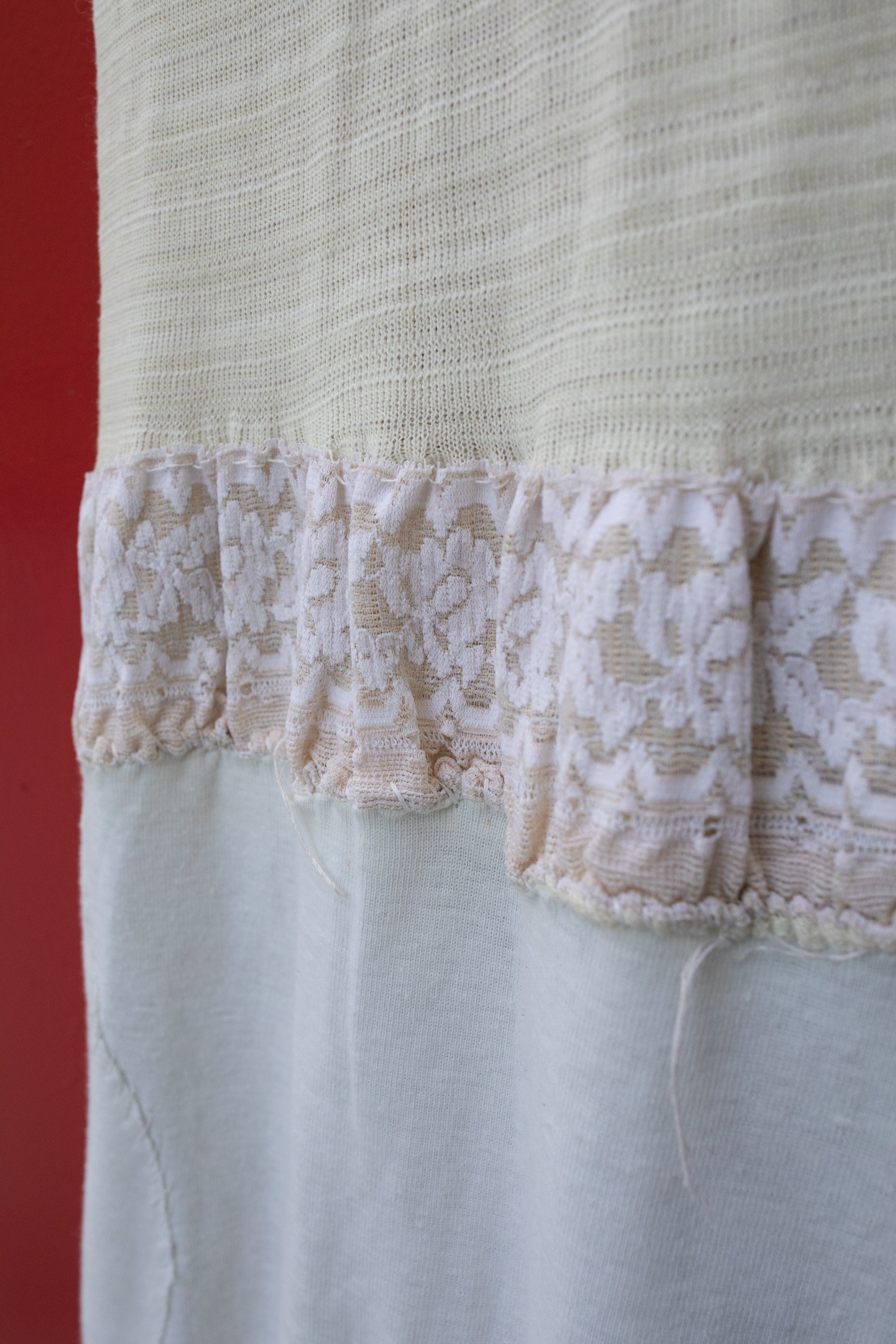 Lace trim at bottom. Slight wear on threads. Fabric has a good amount of stretch.