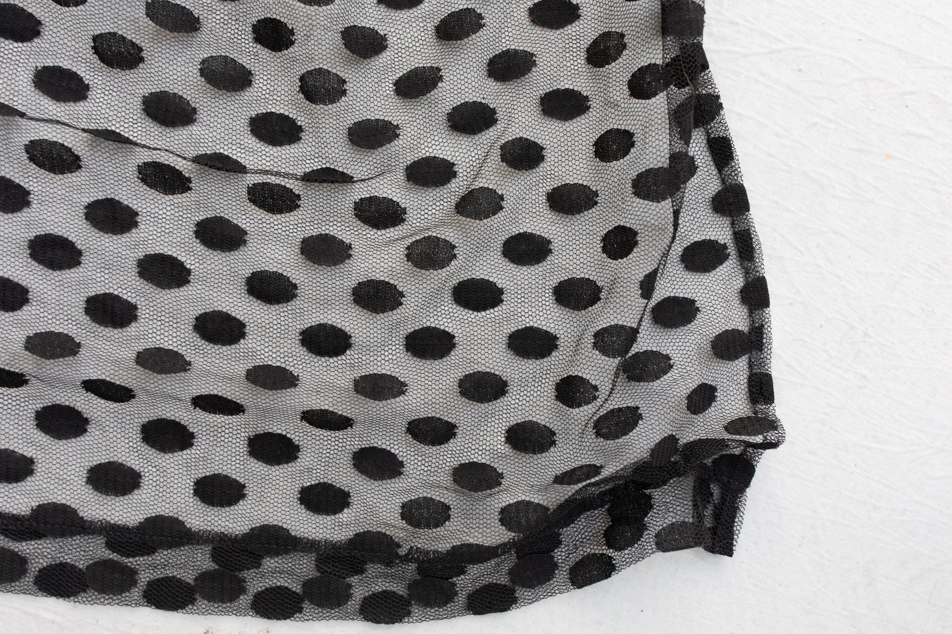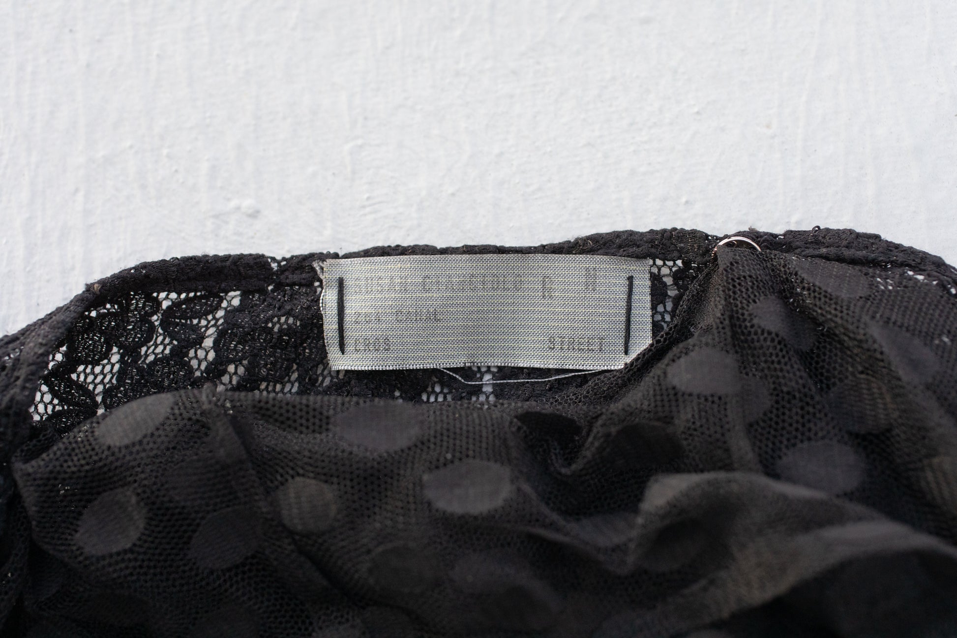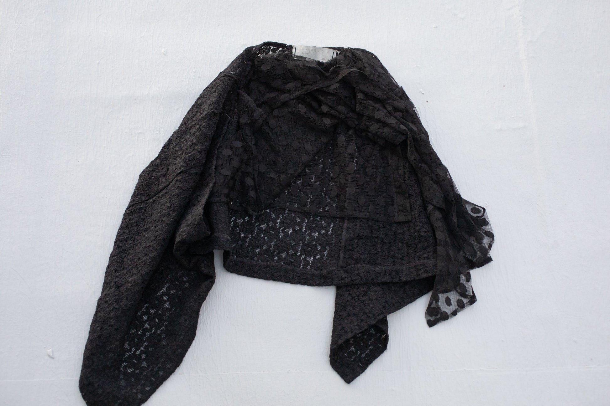 A mix of lace and sheer polka dot fabrics.