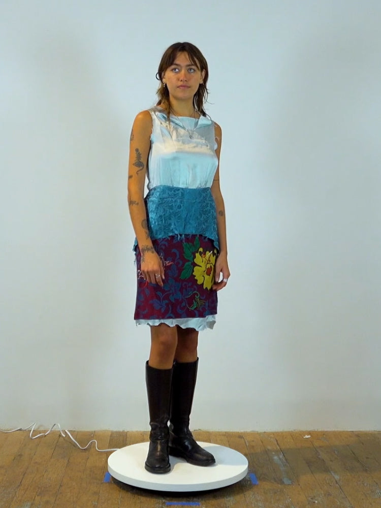 Custom silk tiered dress made for Liz Goldwyn during RUN 11 season.